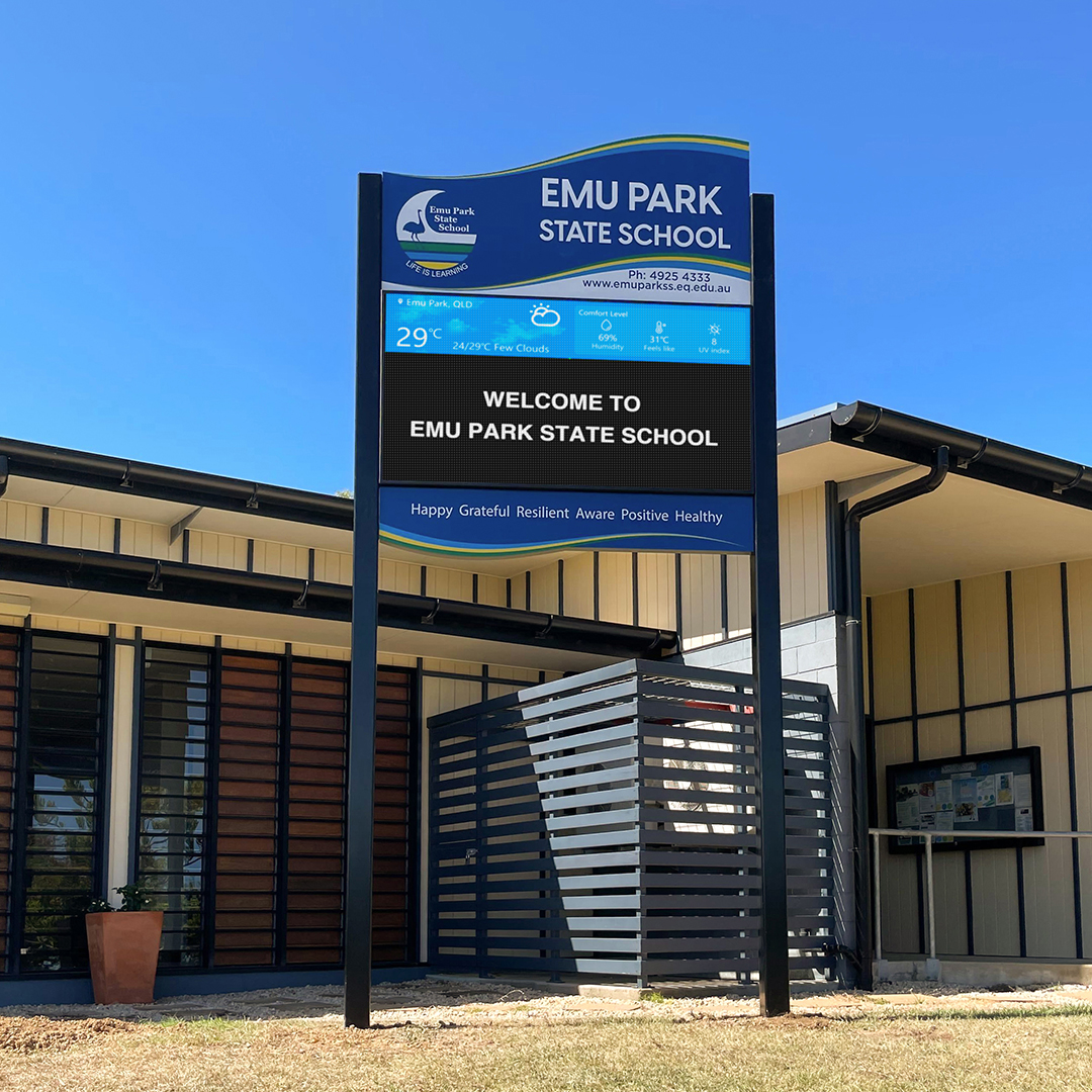 Our team recently replaced the existing outdated static signage at Emu Park State School in Queensland with a custom outdoor LED digital solution, instantly bringing a modern and professional touch to the entrance.